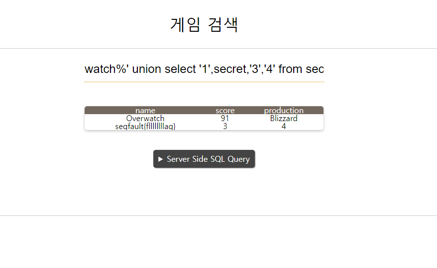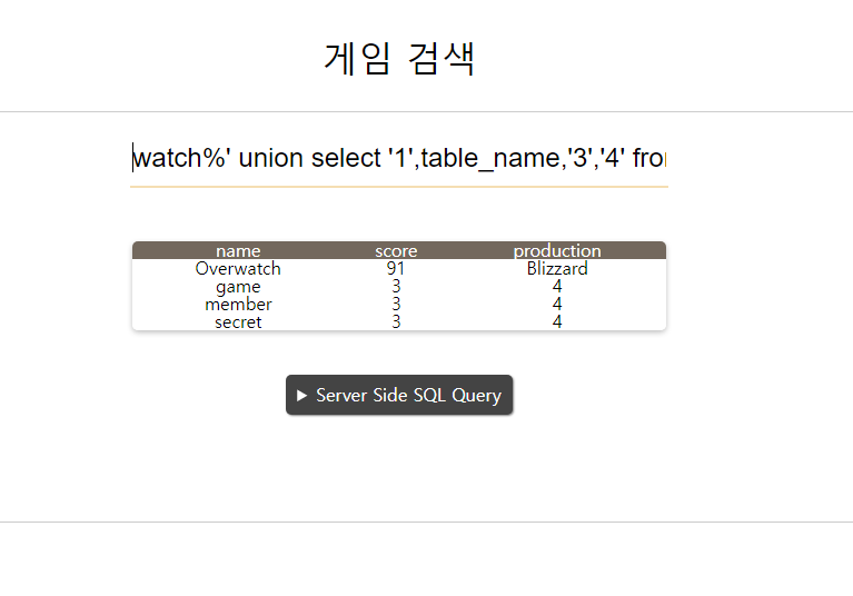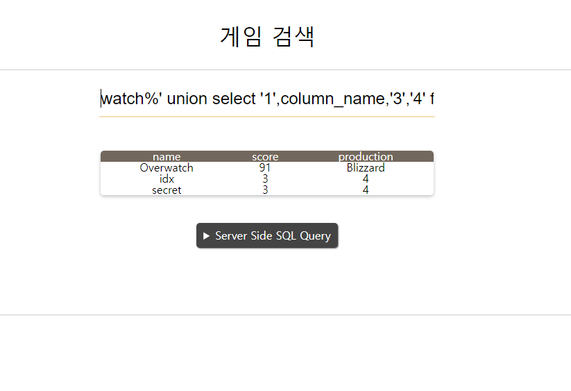 사진에서는 watch%' union select '1','2','3','4 sql문을 썼다.